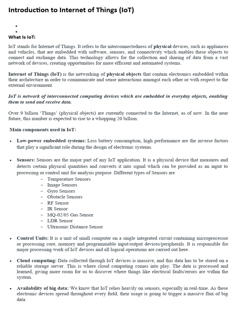 Sensors: Sensors are the major part of any IoT application. It is a physical device that measures and