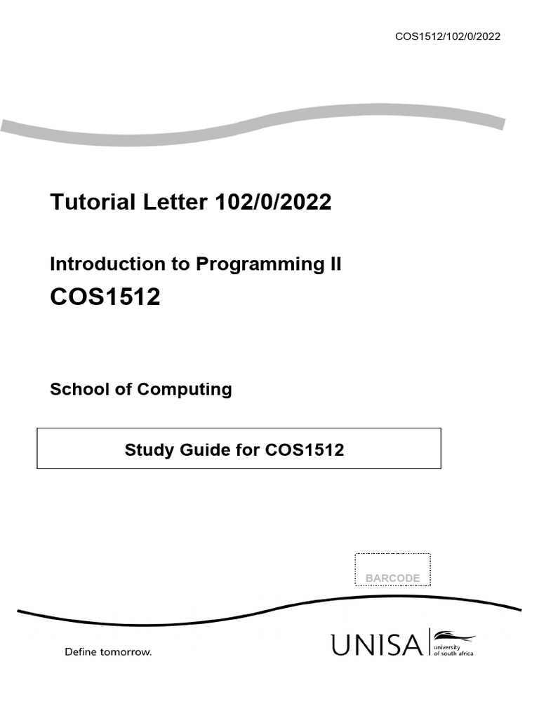 Welcome to COS1512, an introduction to objects and the object-oriented programming