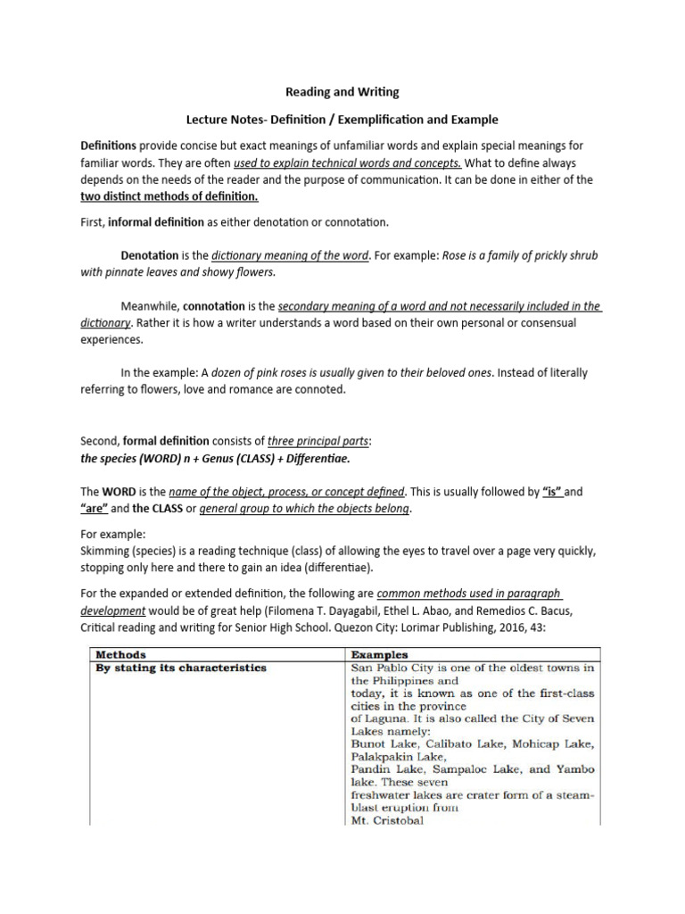 Lecture Notes- Definition / Exemplification and Example