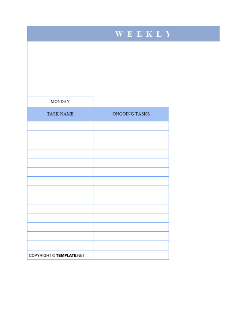 MONDAY 2 Weekly planning