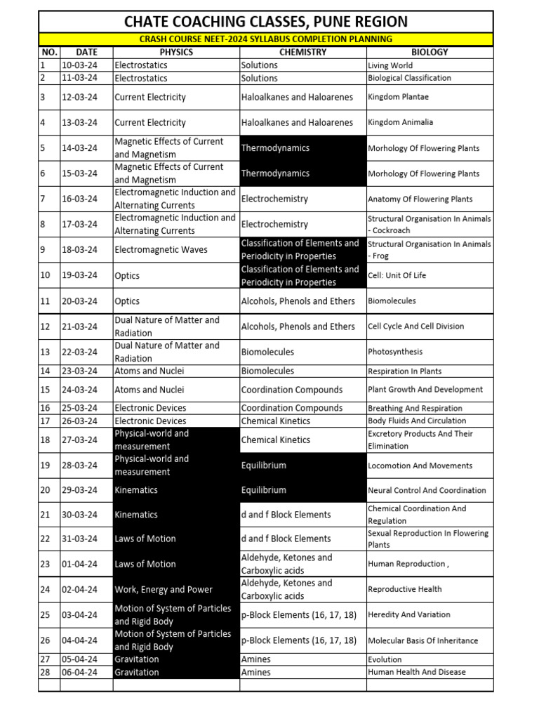 CRASH COURSE NEET-2024 SYLLABUS COMPLETION PLANNING
