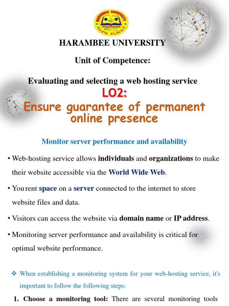 ❖ When establishing a monitoring system for your web-hosting service, it's