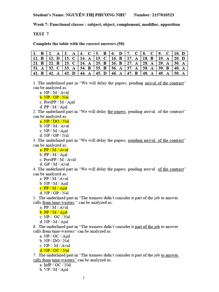 Student’s Name: NGUYỄN THỊ PHƯƠNG NHƯ Number: 2157010523