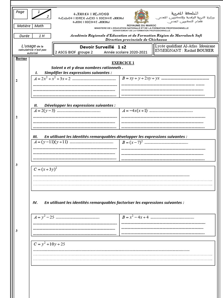 L’usage de la Devoir Surveillé 1 s2 Lycée qualifiant Al-Atlas Idouirane