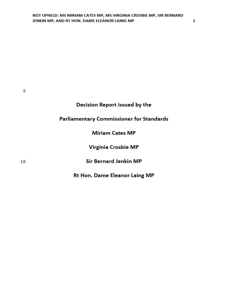 Not Upheld: MS Miriam Cates MP, MS Virginia Crosbie MP, Sir Bernard Jenkin MP, and RT Hon. Dame Eleanor Laing MP