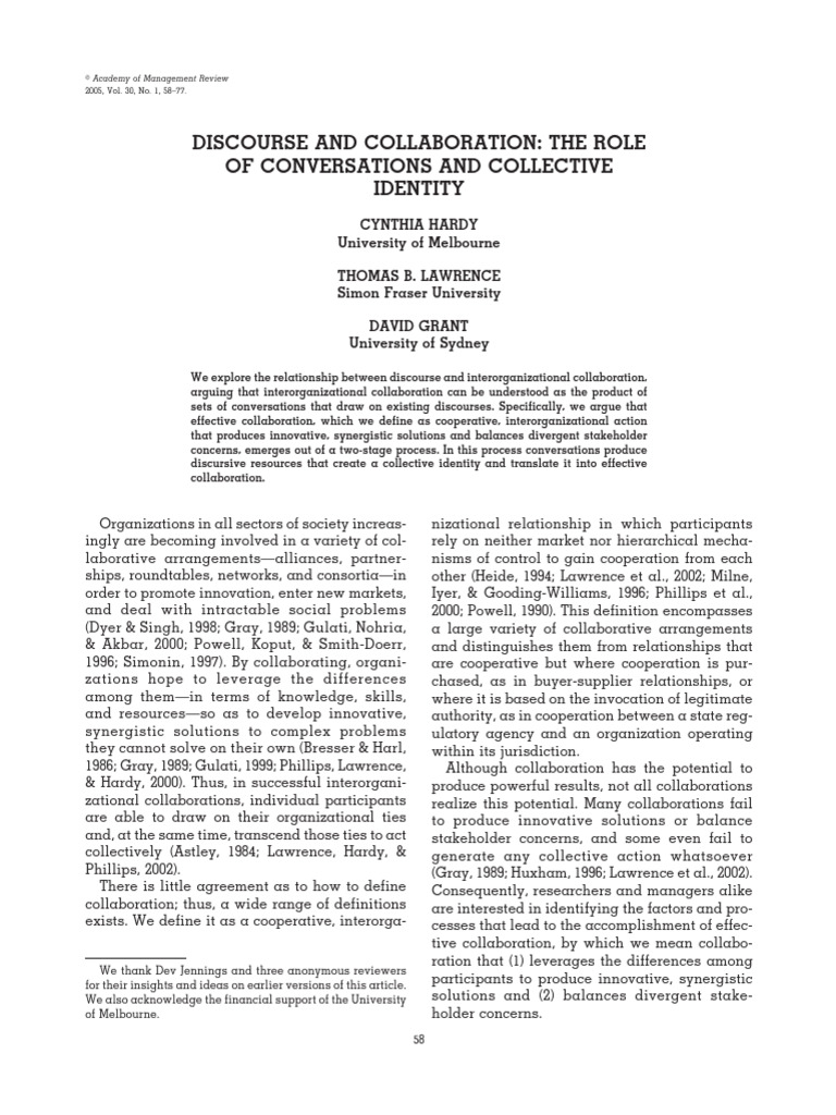 Gray, B. 1989. Collaborating: Finding common ground for Journal, 45: 281–290.