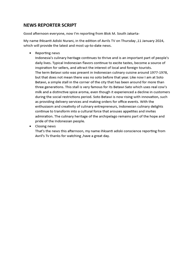 My name Ihksanti Adiski Nurani, in the edition of Avrils TV on Thursday ,11 January 2024,