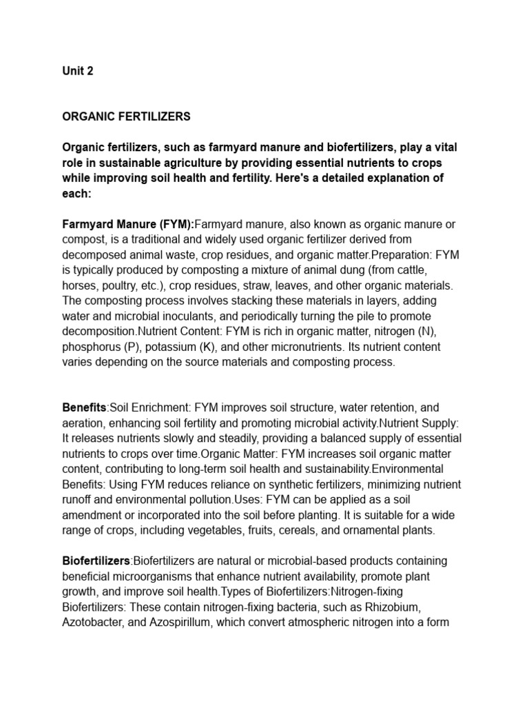 decomposition.Nutrient Content: FYM is rich in organic matter, nitrogen (N),