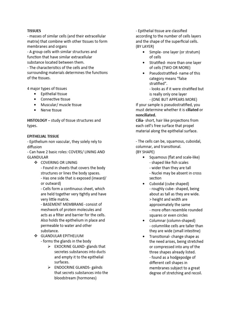 TISSUES - Epithelial tissue are classified