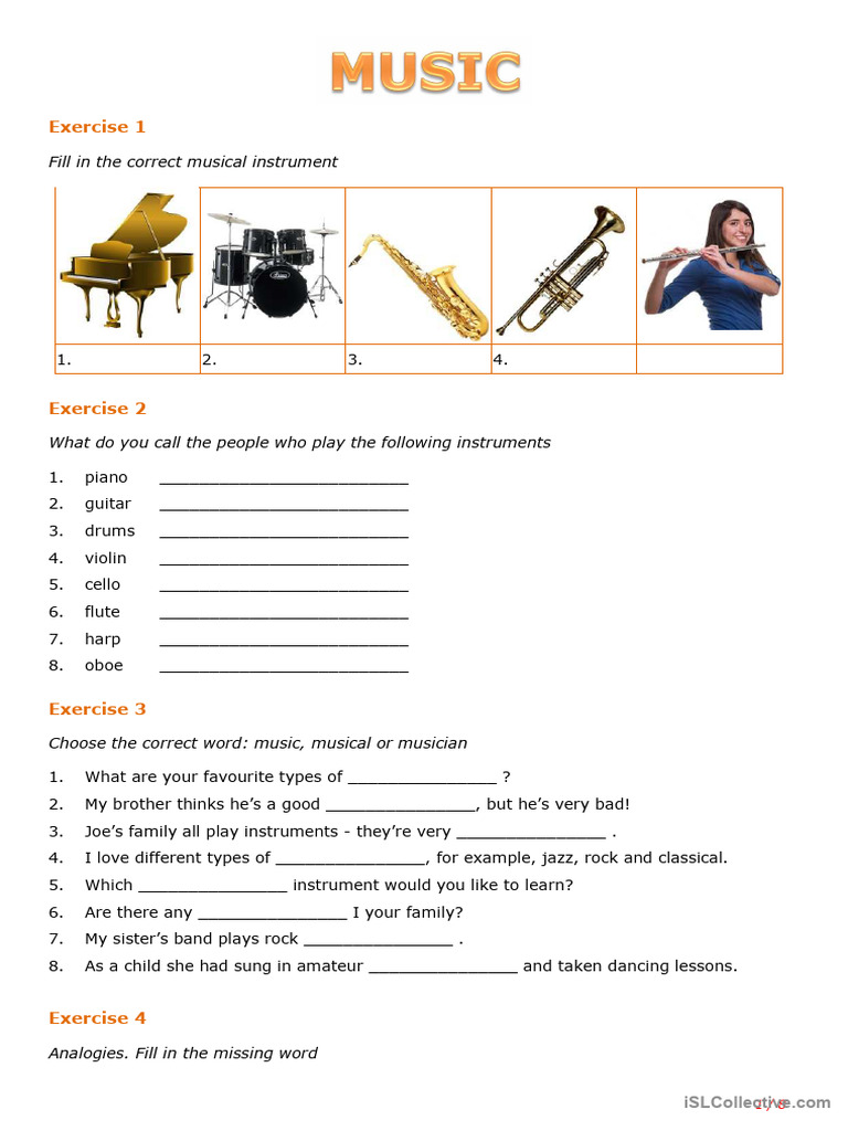 4. I love different types of _______________, for example, jazz, rock and classical.