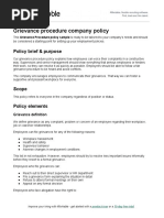 The purpose of the Grievance Policy is to resolve issues in the workplace in the most effective manner