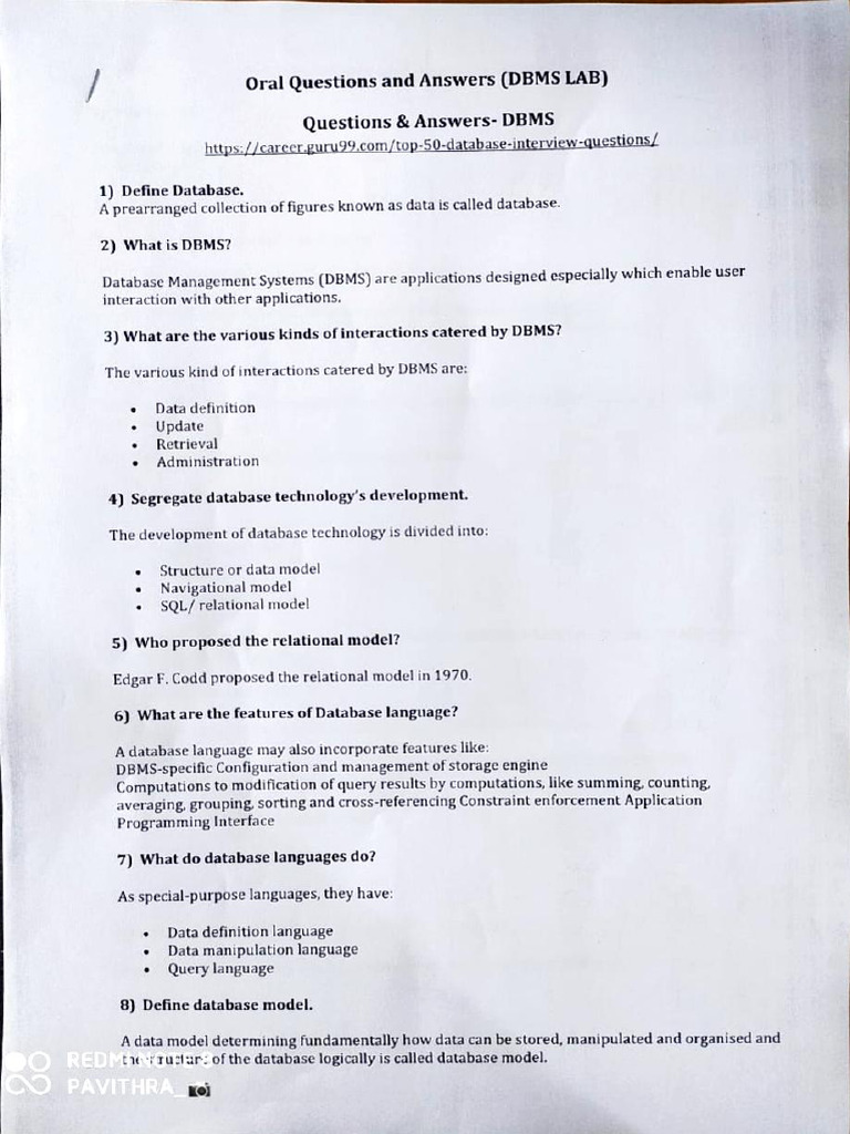 } Oral Questions and Answers (DBMS LAB)