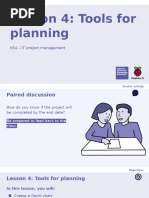completed per stage and who is the task owner. Gantt charts show planned activity