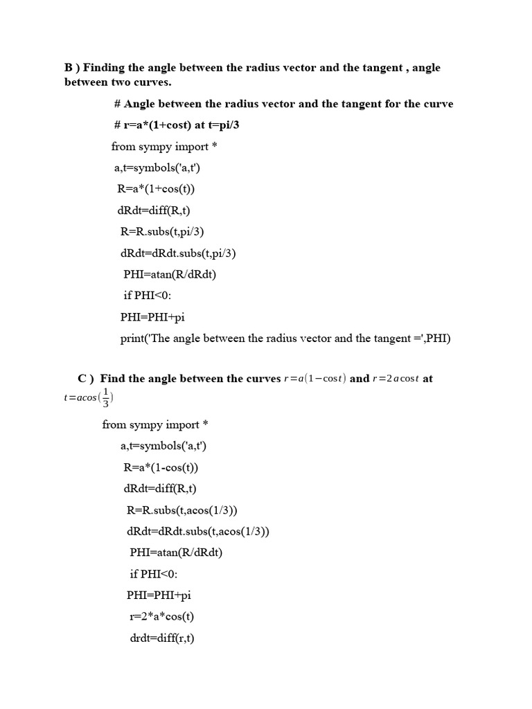 C ) Find the angle between the curves r =a(1−cos t) and r =2 a cos t at