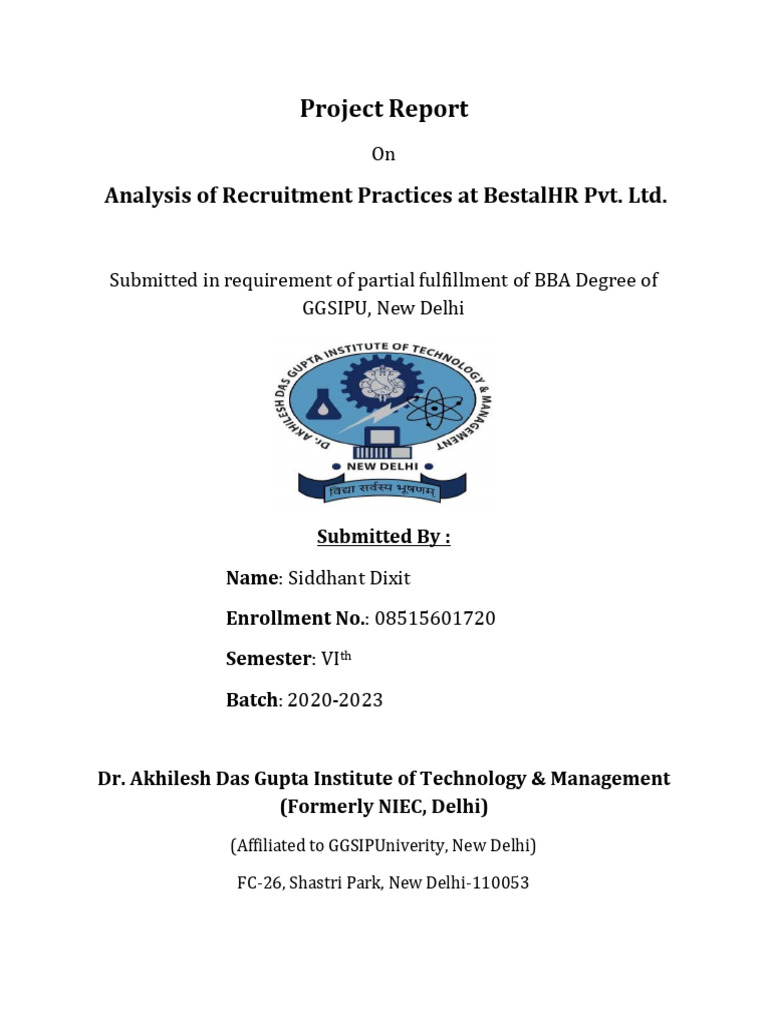 Practices at BestalHR Pvt. Ltd.” submitted in requirement of partial