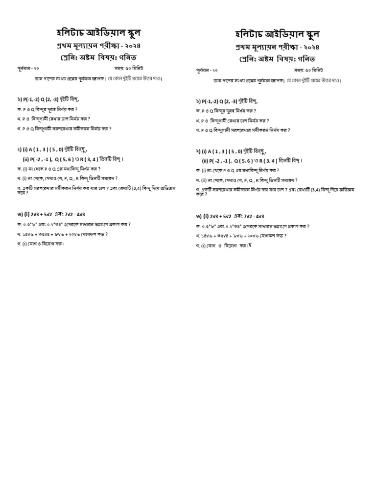 প্রথম মূল্যায়ন পরীক্ষা - ২০২৪ প্রথম মূল্যায়ন পরীক্ষা - ২০২৪