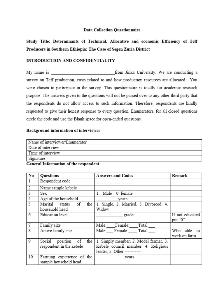 Data Collection Questionnaire