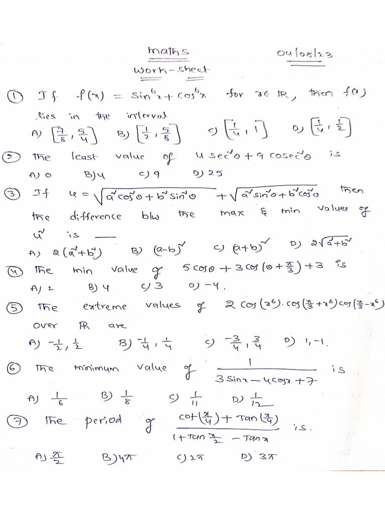 ® We extreme values gf Q Cos (a9). ces (SB +a8)exs(F-a8)