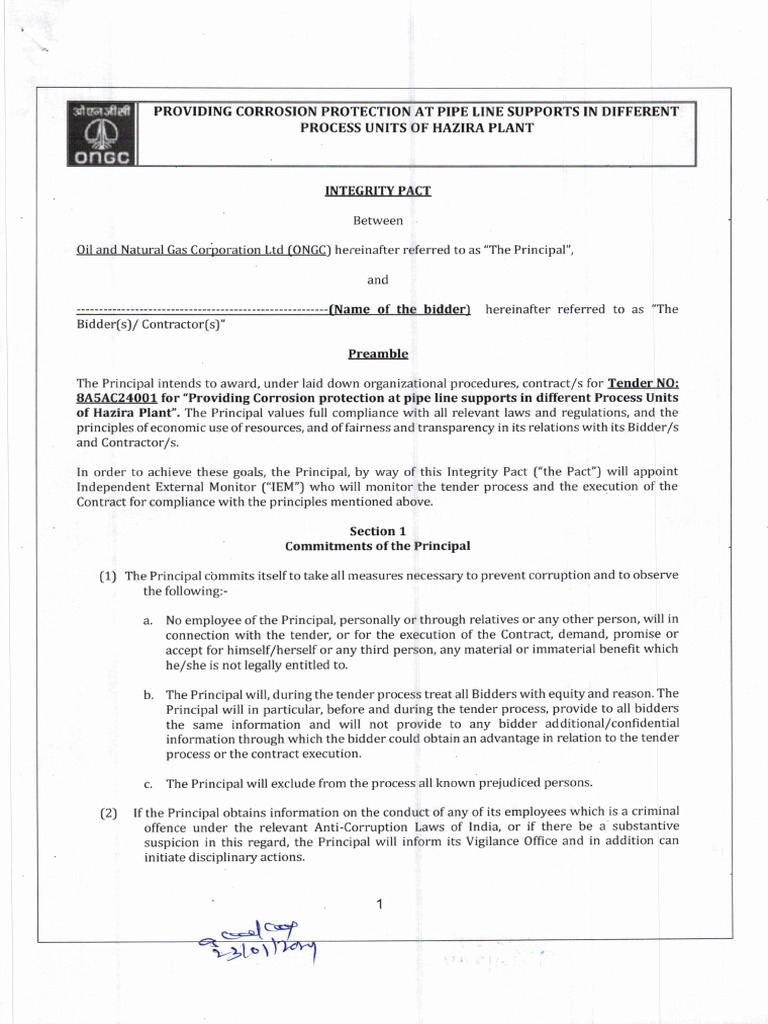 (1) The Bidder / Contractor commits to take all measures necessary to prevent