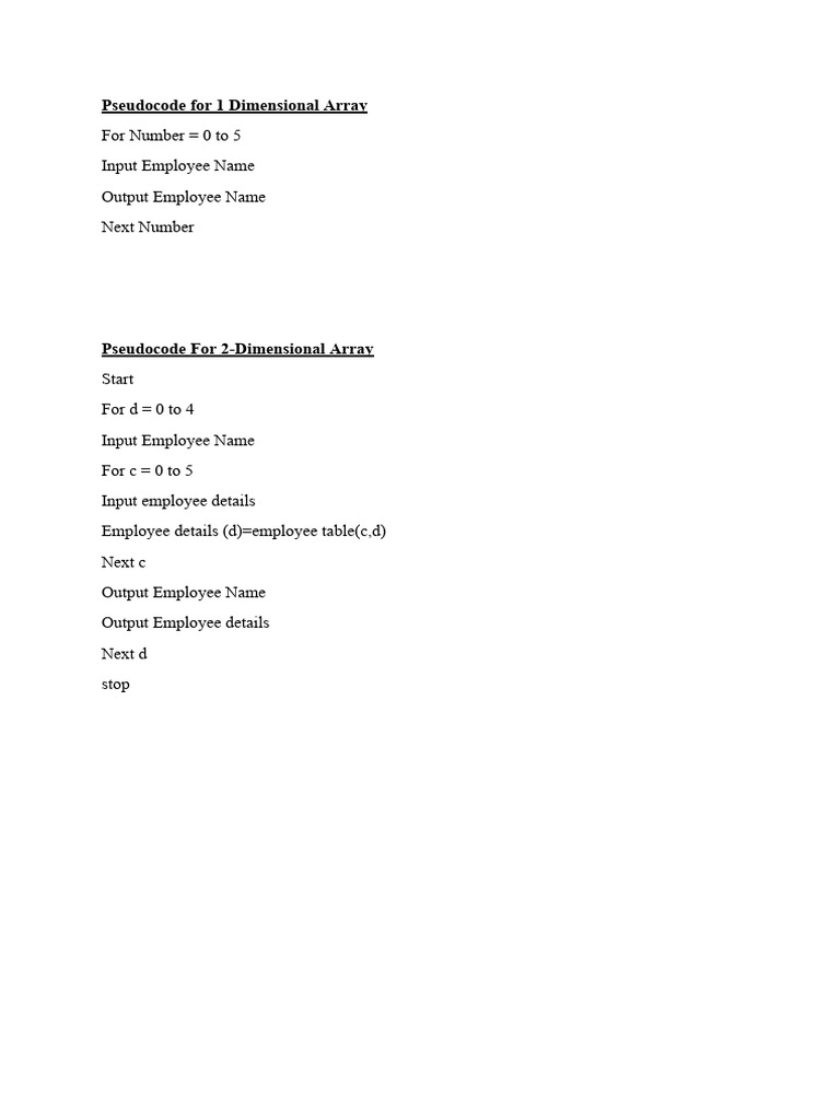 Pseudocode for 1 Dimensional Array