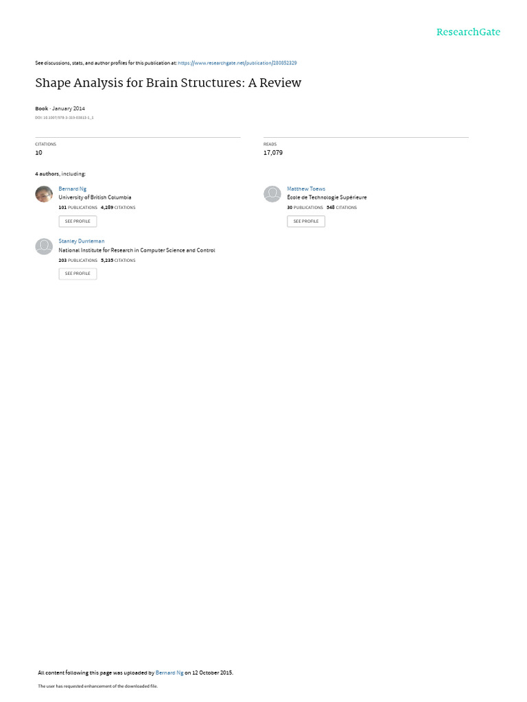 is discussed at the end of this chapter. We hope this review on shape analysis for brain