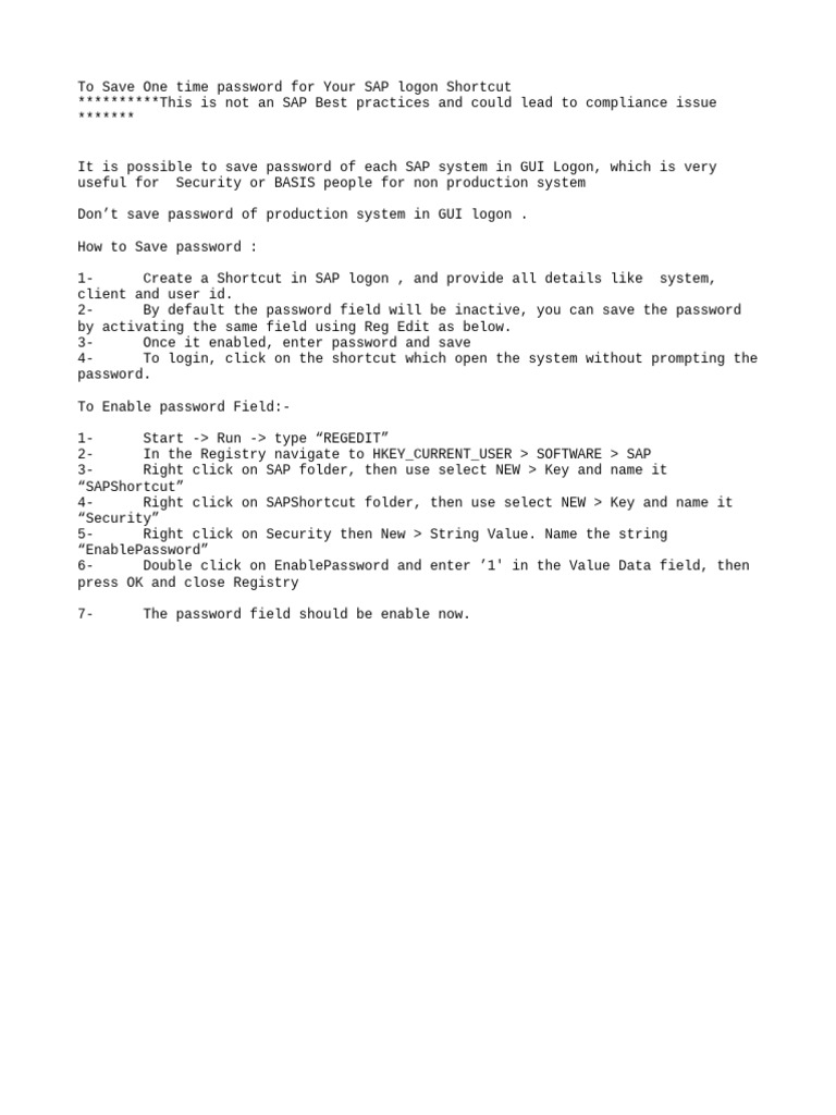 To Save One time password for Your SAP logon Shortcut