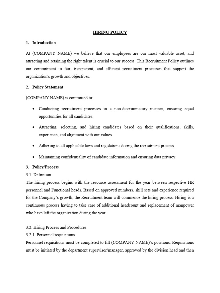 attracting and retaining the right talent is crucial to our success. This Recruitment Policy outlines