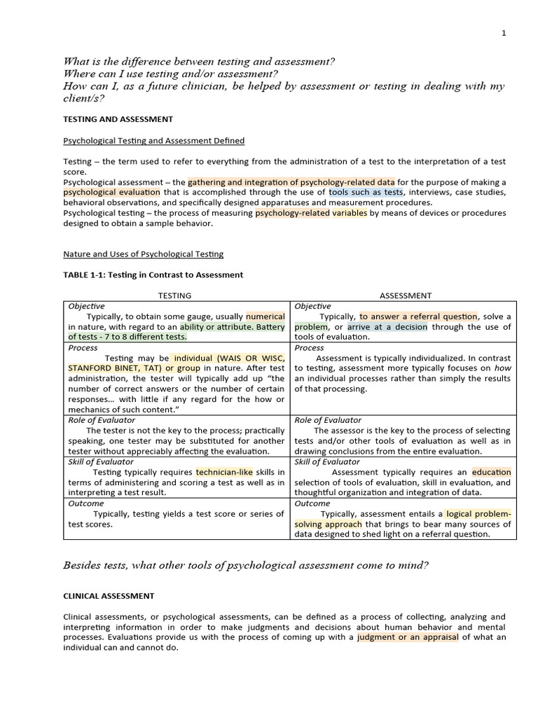 STANFORD BINET, TAT) or group in nature. After test to testing, assessment more typically focuses on how