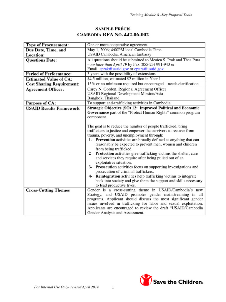 Applicants are encouraged to review the draft “USAID/Cambodia