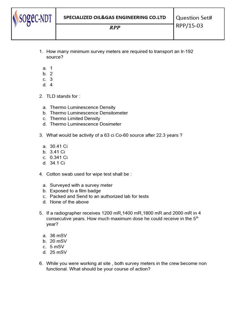 SPECIALIZED OIL&GAS ENGINEERING CO.LTD Question Set#