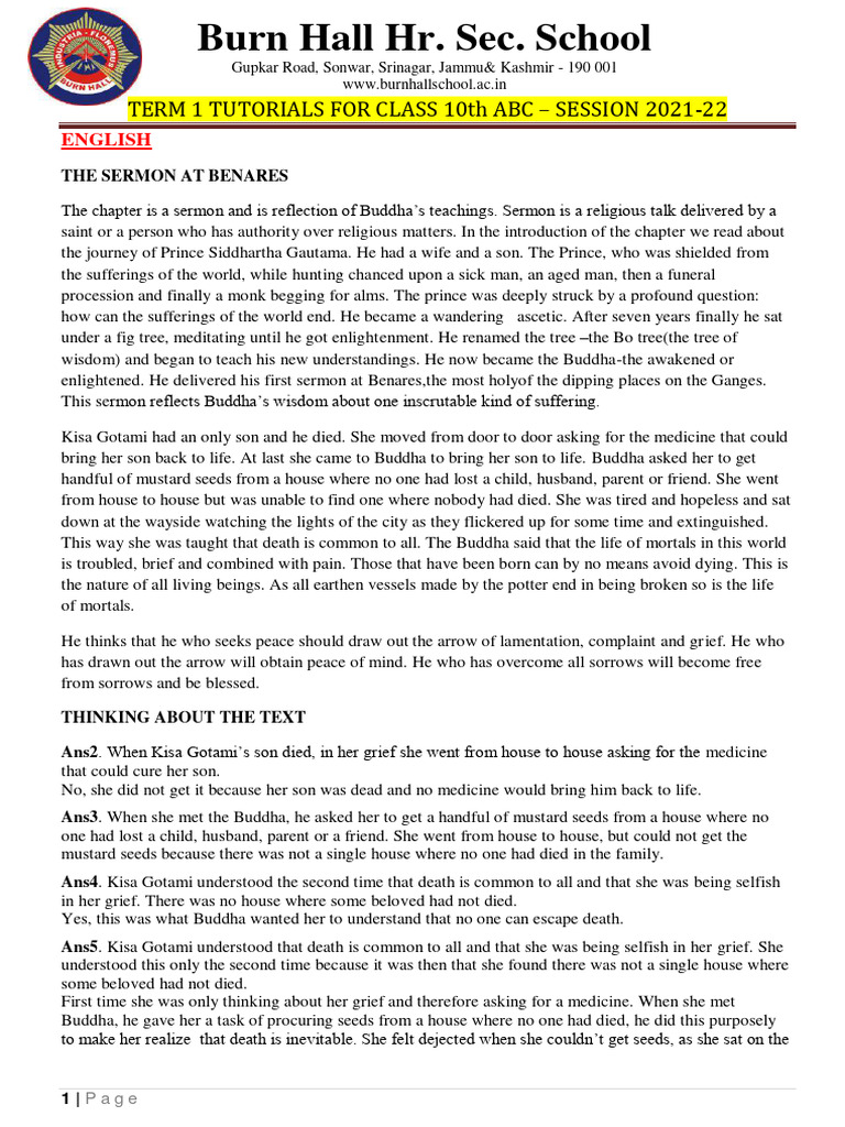 TERM 1 TUTORIALS FOR CLASS 10th ABC – SESSION 2021-22