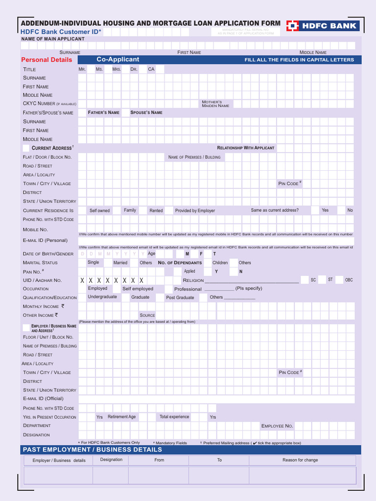 * For HDFC Bank Customers Only # Mandatory Fields † Preferred Mailing address ( 4 tick the appropriate box)