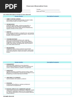 Classroom Peer Observation Record Format