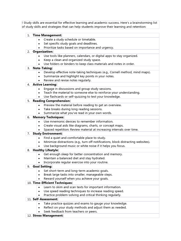 ! Study skills are essential for effective learning and academic success.