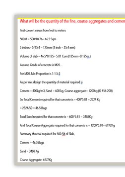 1.Material Required for Slab: -