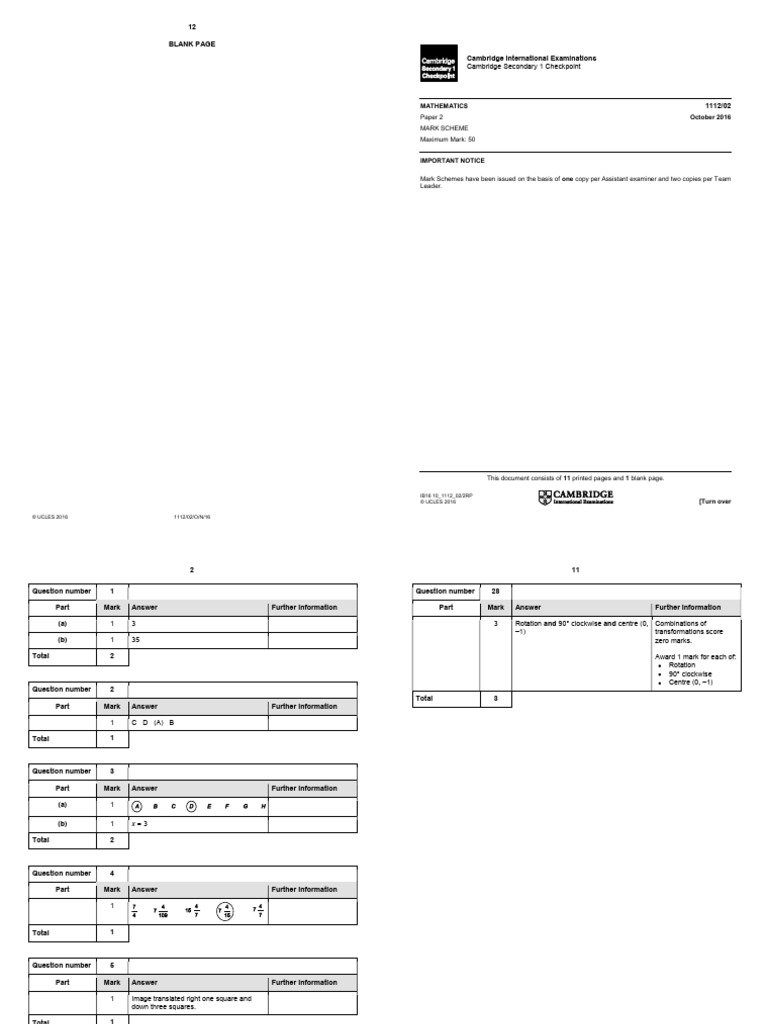 Mark Schemes have been issued on the basis of one copy per Assistant examiner and two copies per Team