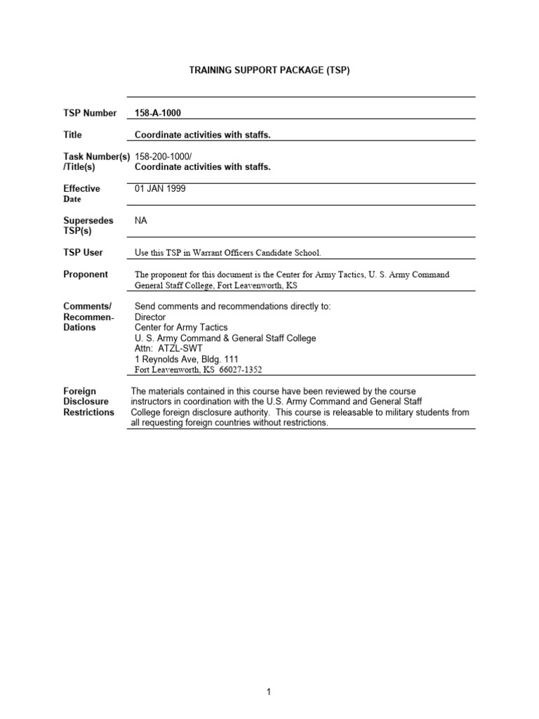 Assignments a Staff Officer) pp. 3-1 through 3-3, and Chapter 4 (Staff Responsibilities and Duties)