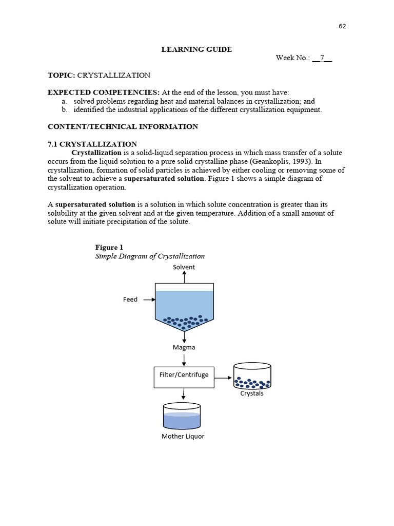 calculated by doing material balances. Figure 5 shows a diagram of crystallization and the