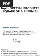 • Students will understand the concept of binomials and special product patterns