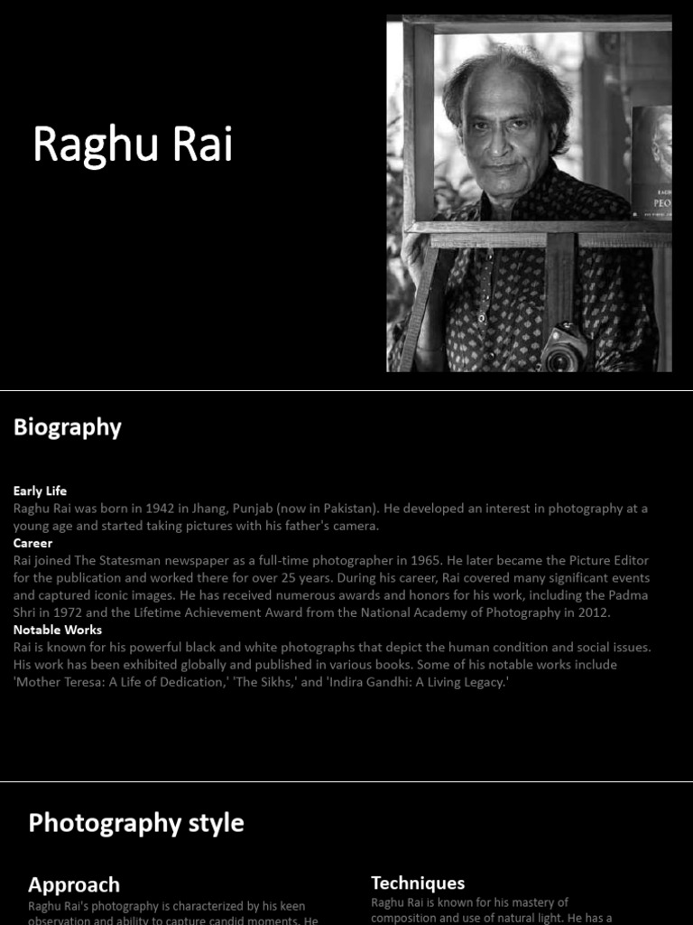 Raghu Rai's photography is characterized by his keen Raghu Rai is known for his mastery of