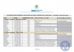 ADVANCED LEVEL (GENERAL EDUCATION) NATIONAL EXAMINATION TIMETABLE - ACADEMIC YEAR 2023/2024