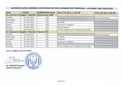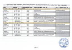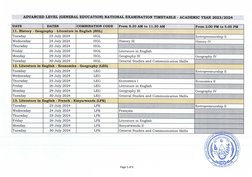 Page 4 of 6ADVANCED LEVEL (GENERAL EDUCATION) NATIONAL EXAMINATION TIMETABLE - ACADEMIC YEAR 2023/2024