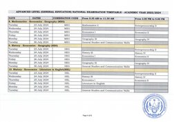 Page 2 of 6ADVANCED LEVEL (GENERAL EDUCATION) NATIONAL EXAMINATION TIMETABLE - ACADEMIC YEAR 2023/2024
