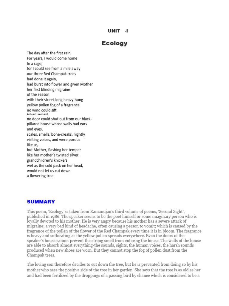 ECOLOGY POEM ANALYSIS