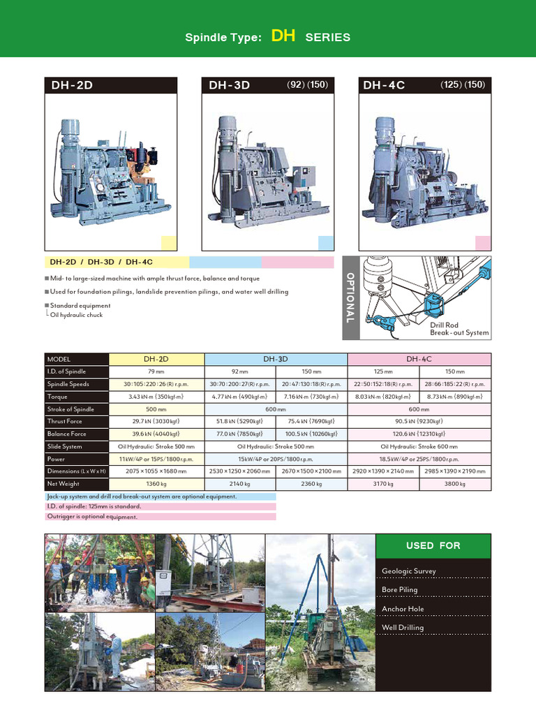 Used for foundation pilings, landslide prevention pilings, and water well drilling