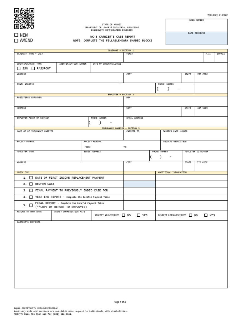 NAME OF WC INSURANCE CARRIER CARRIER ID CARRIER CASE NUMBER