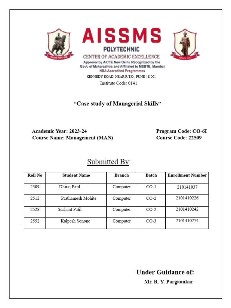 Certified that this micro project report titled “Case study on Managerial Skills”