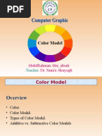 The subtractive model is called CMY model, from cyan, Magenta and yellow, and is used for
