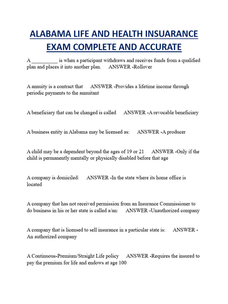 Alabama Life and Health Insurance Exam Guide