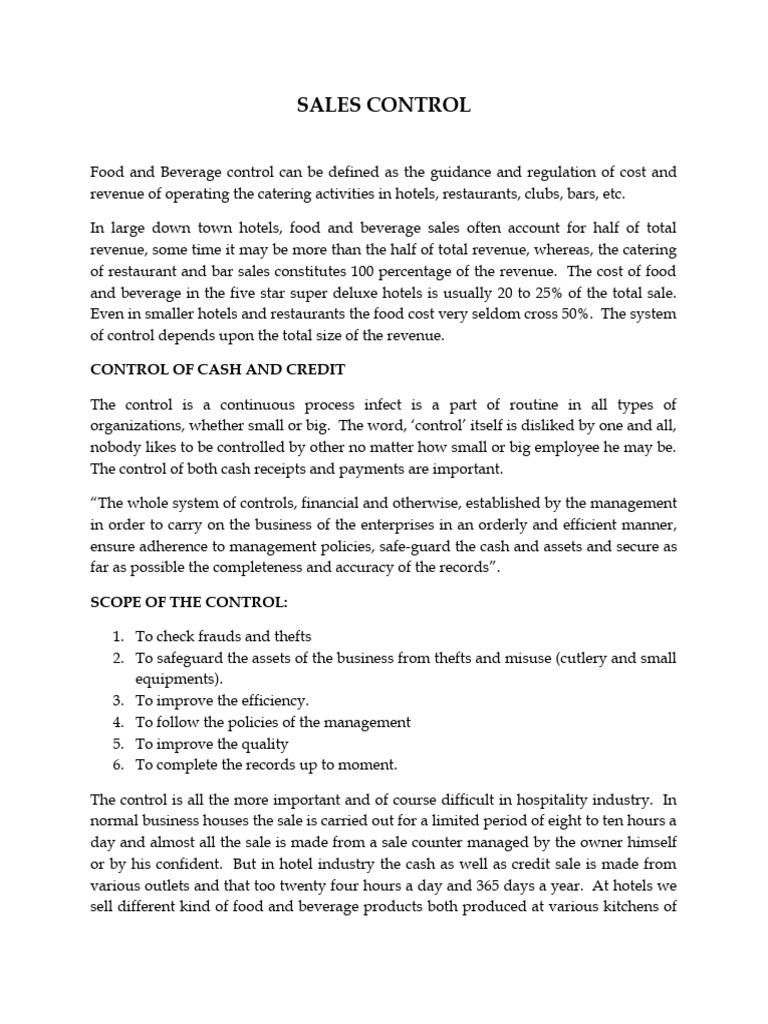 Food and Beverage control can be defined as the guidance and regulation of cost and